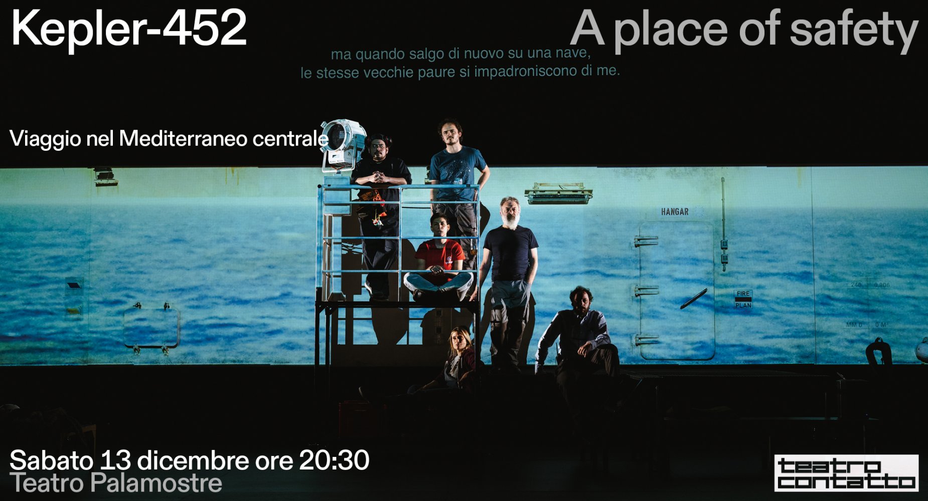 A place of safety – Viaggio nel Mediterraneo centrale è il nuovo lavoro di Kepler-452, ideato dalla compagnia e diretto e scritto da Enrico Baraldi e Nicola Borghesi, una creazione che affonda le sue radici nell’esperienza reale vissuta nell’estate del 2024 a bordo della nave Sea-Watch 5, impegnata in operazioni di ricerca e soccorso nel Mediterraneo centrale. Da quella missione, che ha portato al salvataggio di 156 persone poi sbarcate in un porto sicuro, nasce uno spettacolo che intreccia testimonianze autentiche, materiali documentari e sguardo teatrale, riportando in scena le voci e gli sguardi di chi opera quotidianamente nel mare più attraversato del continente.