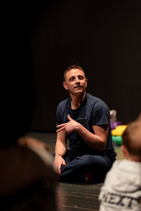 Lo spettacolo si ispira all’opera di Bruno Munari: gesti semplici, forme essenziali, giochi di (dis)equilibrio e leggerezza.