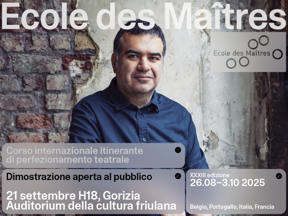 The training objective of the Ecole des Maîtres is to initiate a relationship between young actresses and actors, trained at drama academies and theatre schools in Europe and already working as professionals, and renowned directors of the international scene, in order to give life to a work experience strongly aimed at comparing and exchanging skills on staging methods and practices, starting from different texts, languages and artistic languages, during itinerant ateliers.