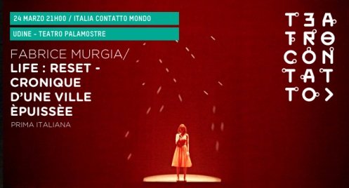 Nuovo evento europeo a Teatro Contatto sabato 24 marzo ore 21 al Teatro Palamostre di Udine con la prima italiana di LIFE : RESET — CHRONIQUE D'UNE VILLE ÉPUISÉE, spettacolo “multimediale” di Fabrice Murgia, ventottenne enfant prodige della nuova scena contemporanea.