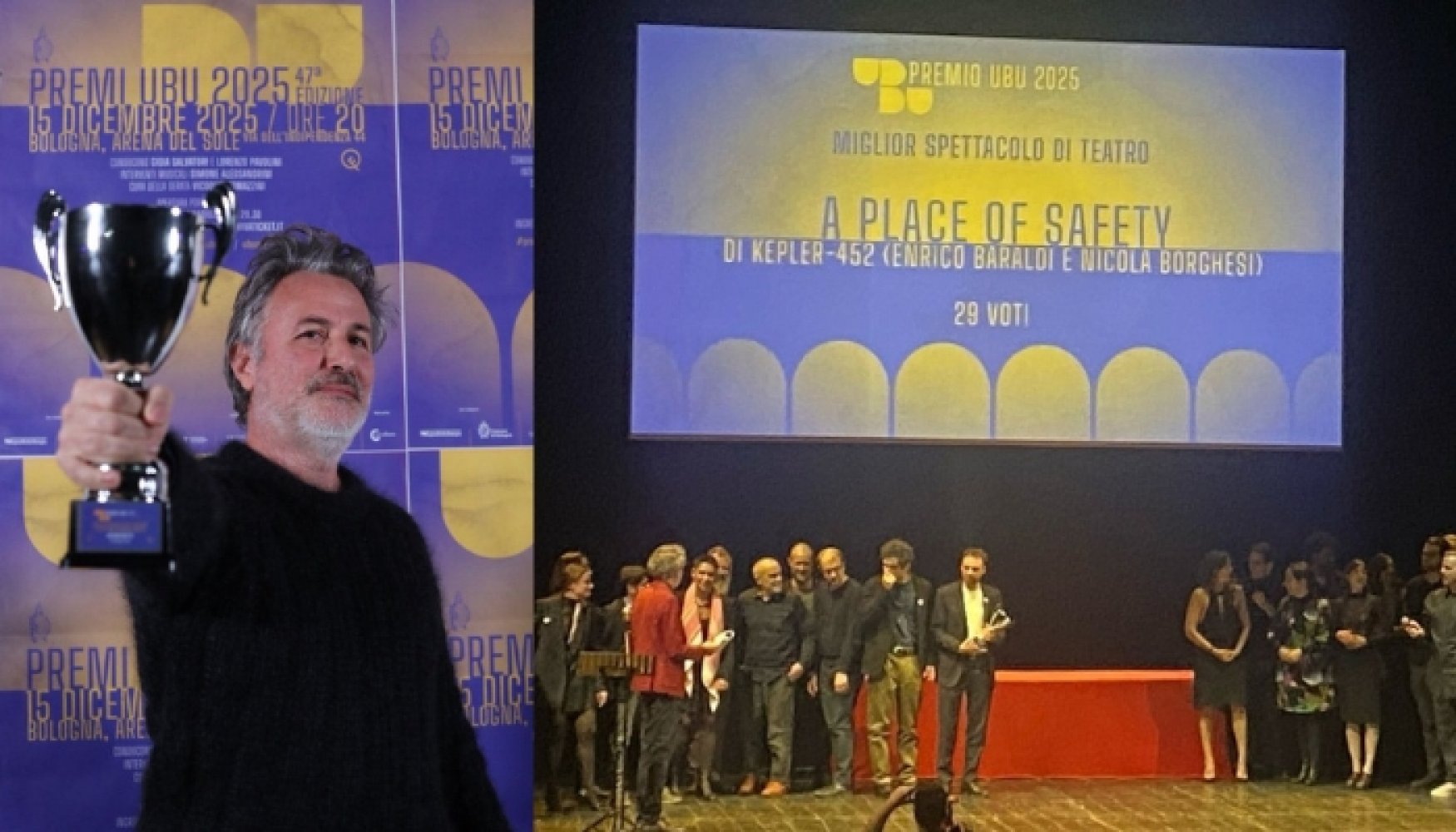 A place of safety. Viaggio nel Mediterraneo centrale di Kepler-452 — una co-produzione CSS, Emilia Romagna Teatro ERT/Teatro Nazionale, Teatro Metastasio e Théâtre des 13 vents CDN Montpellier, appena applaudita con standing ovation a Teatro Contatto — vince il Premio Ubu come Miglior spettacolo di teatro 2025.