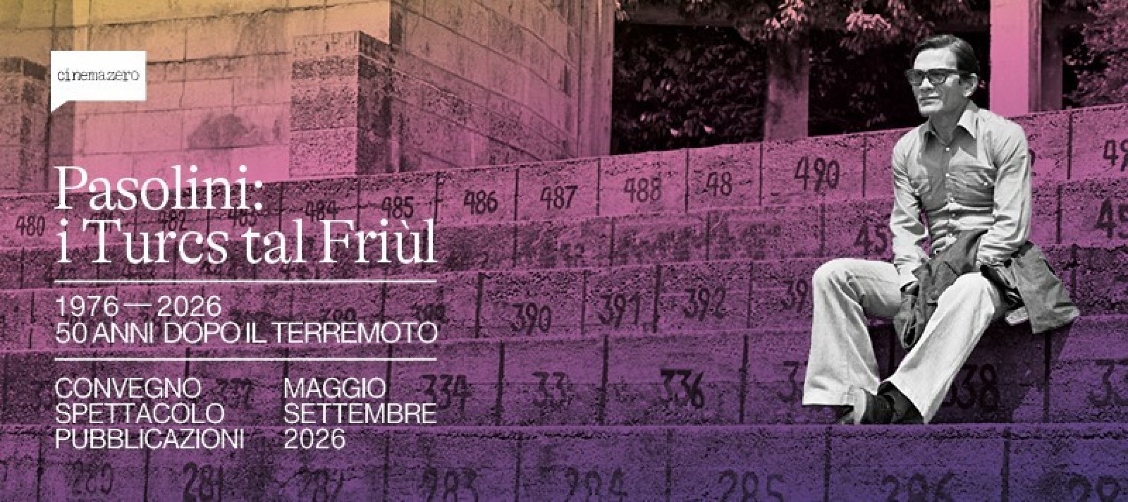 A cinquant’anni dal terremoto che ha profondamente segnato il Friuli e dall’anniversario della prima dello spettacolo teatrale, nasce I Turcs tal Friùl 1976–2026. 50 anni dopo il terremoto, un progetto ideato e curato da Luca Giuliani e Roberto Calabretto (docente all’Università degli Studi di Udine) su iniziativa di Cinemazero, che si appresta a sviluppare un’articolata serie di eventi culturali di lunga ricaduta, che intrecciano teatro, ricerca e memoria, restituendo al presente uno dei testi più significativi dell’opera di Pier Paolo Pasolini. Il progetto è realizzato grazie al sostegno della Regione Friuli Venezia Giulia e di Confindustria Udine.