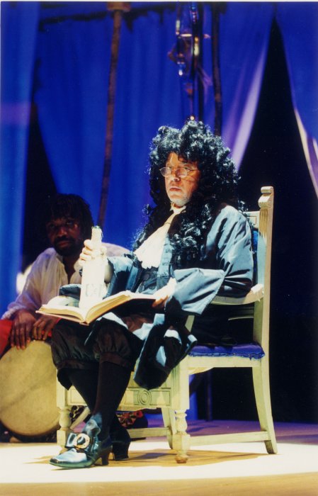 Nel '600 Molière rubava – attività benemerita e legale in teatro - ai comici italiani, trasformando e camuffando e approfondendo canovacci e idee. Noi oggi andiamo a riprenderci il nostro, ma già che ci siamo, ci riprendiamo anche le sue strepitose variazioni. Saccheggiamo la sua opera e la usiamo come un manuale di teatro per curare, cura di teatro per la vita contro la morte: due tomi di tonificante totale, unguento miracoloso per la sopravvivenza.