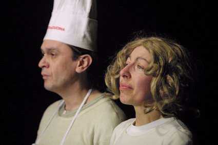 locandinaLa tovaglia a quadri, i taglieri con i salumi, le noci e le bottiglie di vino frizzante. Una ventina di commensali seduti attorno al grande tavolo. Teatro da mangiare? Alla fine degli anni '80 Stefano Pasquini e Paola Berselli facevano gli attori. Poi ne hanno avuto abbastanza e hanno deciso di ritornare alle proprie origini contadine. Oggi vivono e lavorano in campagna, in un vecchio podere di famiglia trasformato in agriturismo, nel cuore di una valle umida e fredda, poco distante da Bologna. Nel silenzio di questa valle è cresciuta la loro storia e, pochi anni dopo, anche il bisogno di condividerla. Teatro da mangiare? è nato così, in casa, anzi in cucina: racconto per amici riuniti attorno al tavolo allestito nella vecchia casa colonica. Con l'acqua che bolle, la sfoglia per le tagliatelle, le canzoni e le storie di dieci anni della loro e della nostra vita. Una confessione in pubblico. Un autobiografia singolare. Forse quella di un'intera generazione. Per passare dal dolore alla gioia, alla malinconia, mangiando il pane, le verdure, la pasta (tutto cibo biologico, coltivato e preparato da loro stessi) mentre un sorriso spontaneo si mischia al tragico della vita, e il teatro e le parole conquistano il centro. Dopo tante repliche nella casa colonica delle Ariette, ora Teatro da mangiare? si gusta anche nei teatri. Non si vede più la campagna emiliana oltre le finestre. Ma il sapore delle tagliatelle non è cambiato, e la genuinità e la sincerità sono le stesse.