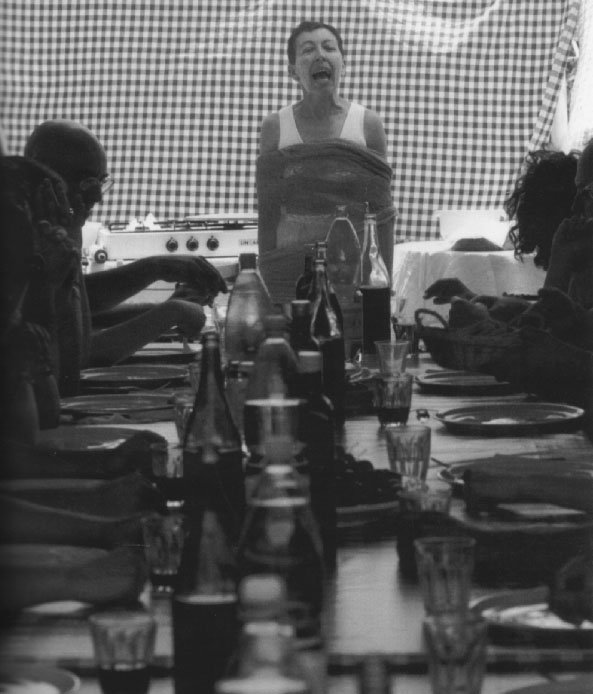 Sì, a Teatro da mangiare? si mangia davvero, malgrado il punto interrogativo. Si mangiano le cose che Paola ed io facciamo da dieci anni, da quando è cominciata la nostra vita di contadini. Si mangiano le cose che coltiviamo e trasformiamo nella nostra azienda agricola, Le Ariette, e che tiriamo fuori dalla nostra terra. Si mangia il grano che diventa pane, o farina che impastata con le uova diventa sfoglia, e poi tagliatelle. Si mangia lo scalogno che finisce sott'olio. Si mangiano le verdure con la salsa di yogurt che prima quando avevamo le pecore, facevamo col latte delle nostre pecore. In dieci anni quante tagliatelle abbiamo tirato? Due tonnellate. Quanto pane abbiamo cotto nel forno a legna? Quattro tonnellate. Quanti pomodori abbiamo raccolto? Venti tonnellate.