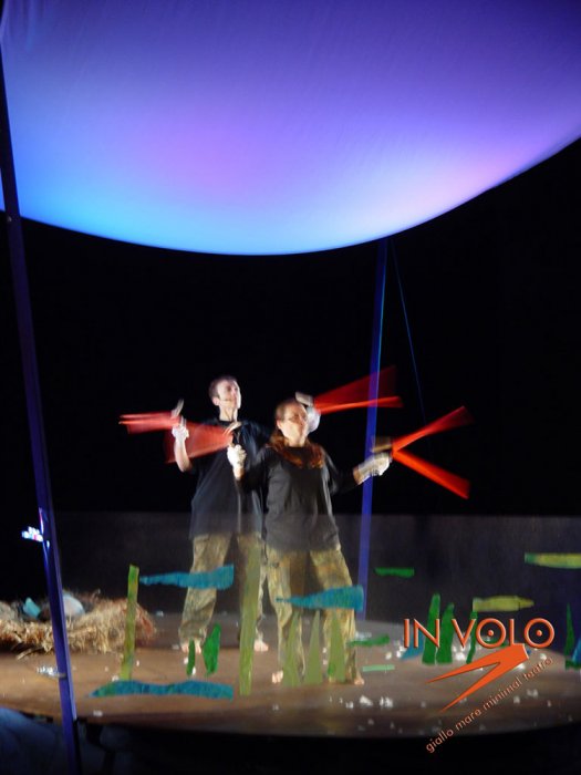 E’ chiaro che il volo nello spazio libero del cielo, l’istinto e le rotte di migrazione sono lo sfondo metaforico su cui questo spettacolo cerca di costruire un parallelismo simbolico con il percorso evolutivo e di crescita dei bambini, con particolare riferimento ai “distacchi”, alle partenze dal nido verso le piccole e le grandi mete del lungo viaggio della vita.