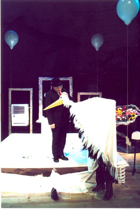 locandinaSenza petrolio si può vivere, senza acqua no. Siete pronti a cambiare il mondo? Tra le nuvole è una storia fantastica, la storia del più grande “trasloco” mai avvenuto: quello dell’intero genere umano che un giorno dovette fare “armi e bagagli” per sopravvivere. É la storia di una fitta coltre di nebbia scesa sulla terra, di una nebbia diversa da tutte le altre, una nebbia che non se ne andrà più via. É la storia di come l’umanità, sfrattata dall’aria divenuta irrespirabile, fu costretta a trovare nuova vita nel cielo: tra le nuvole, dove l’aria era ancora pura e dove un sole ancora risplendeva. Tra le nuvole è uno spettacolo dove l’arte dell’attore incontra quella dei pupazzi animati, dove si sono intrecciate esperienze diverse grazie all’utilizzo di musiche, oggetti, materiale scenico, idee, incertezze, visioni. Allo spettacolo, vincitore del XXV Festival di Teatro Ragazzi di Padova, è stato assegnato nel 2006 il Premio Rosa d’Oro dalla giuria dei bambini, e il Premio Città di Padova 2006 con la seguente motivazione: “Per la grande forza comunicativa, dovuta all’altissima capacità degli attori che hanno saputo in ogni momento rendere vero ogni ruolo, tratteggiando con intensa credibilità uomini e pupazzi, animati con la stessa dignità e lo stesso potere emozionale. Per il testo ironico ed intelligente, che ha saputo fare delle debolezze umane una forza, della paura un riscatto, del sogno una vittoria”.