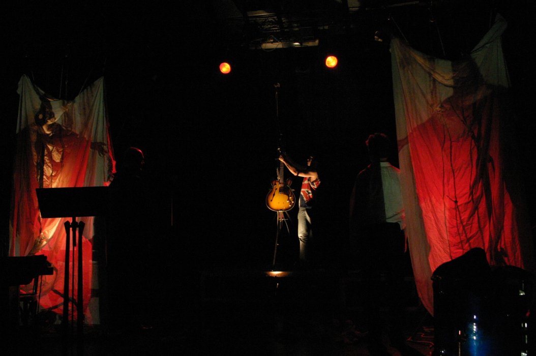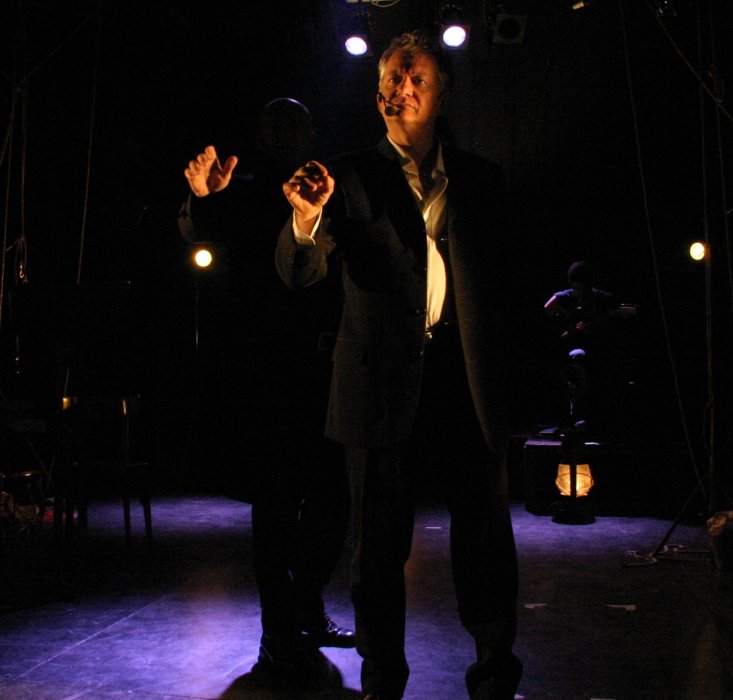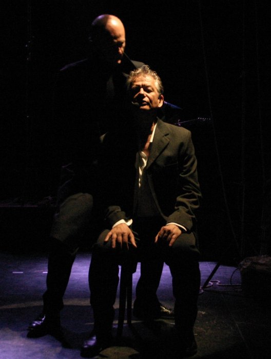 locandinaLo spettacolo si ispira alla Storia della colonna infame pubblicata come appendice dei Promessi Sposi, un testo breve che non ebbe grande fortuna al tempo in cui Manzoni lo scrisse, ma che oggi è considerato una delle sue opere più importanti. Si tratta di un commento agli atti del processo, ai presunti untori della peste del 1630, capri espiatori da dare in pasto a un popolo terrorizzato e furente. Nella messinscena, la vicenda viene raccontata come un “legal thriller”, accompagnata da musiche e canti. Una vera e propria partitura, un concerto teatrale per voci e chitarra elettrica. Suoni, rumori e canti che richiamano urla, gemiti, preghiere. La scena è composta da un leggio, una sedia e tre piantane di metallo che alludono a patiboli, macchine da tortura, croci. Sullo sfondo il mondo d’oggi: “pesti” che ciclicamente minacciano l’umanità.