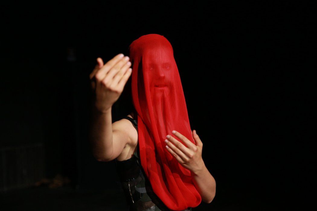 La ragazza in scena si trasforma fisicamente nel vortice estenuante di immagini e sensazioni che si generano l’una sull’altra come un frattale, in una sorta di attacco dall’interno, dal fondale dell’abisso della sua persona, verso la superficie.