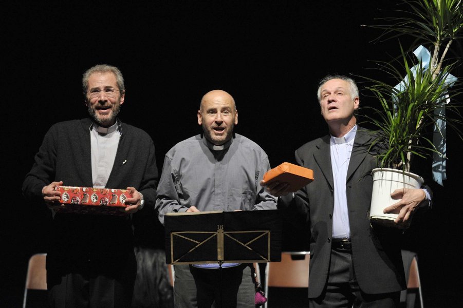 Teatro Incerto prende i voti. In trent’anni di carriera sui palcoscenici hanno immaginato per loro tantissimi ruoli. Sono stati arbitri, muratori, ladri, maratoneti, stranieri, ma la “chiamata” dell’abito talare è arrivata solo un anno fa, quando