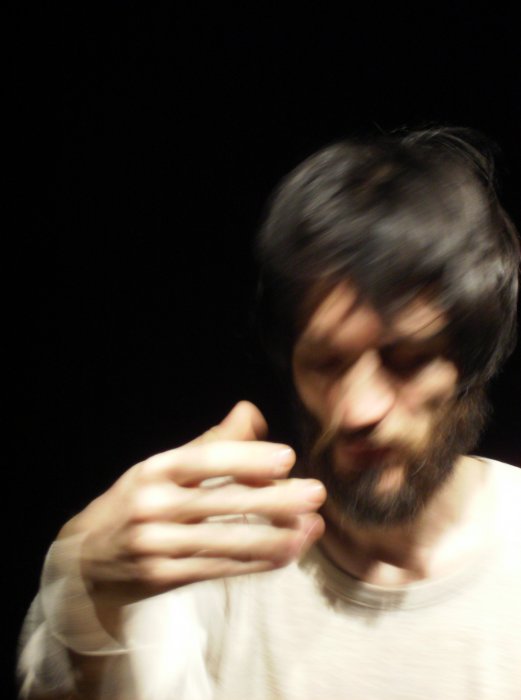 inginocchiatoio e una bottiglia d’acqua, ospita la lotta spirituale, le orazioni e le illuminazioni di un giovane direttore d’anime che pare prepararsi a un sermone pubblico verificando spietatamente dentro sé la veracità del proprio completo svuotamento come individuo volitivo, unica condizione per l’entrata di Dio in