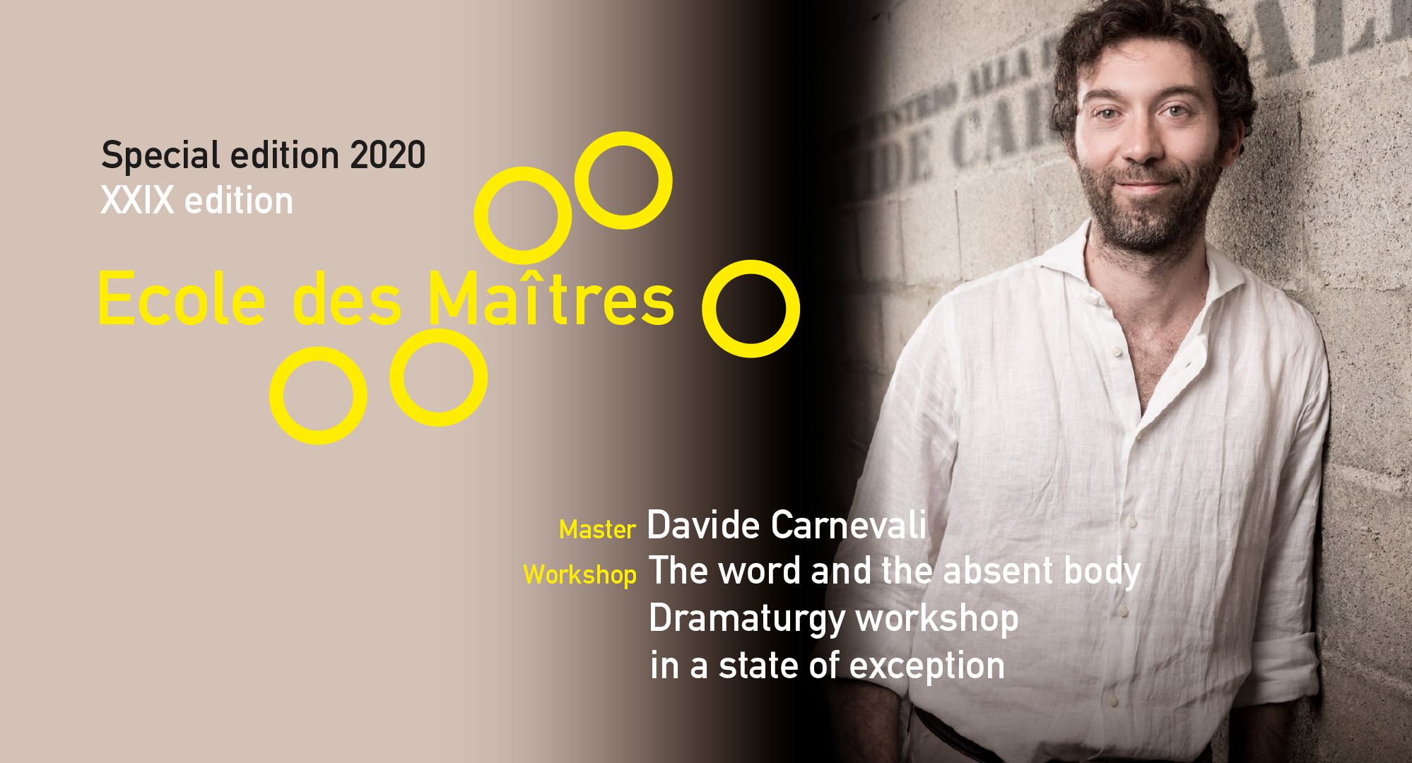 The artistic direction of the Ecole des Maîtres has decided to promote a special 2020 edition for playwrights taught by a master of theatrical writing. The Italian playwright Davide Carnevali will share his skills with 8 young playwrights from the partner countries. The course will be taught remotely, for a whole year, starting from July 2020.