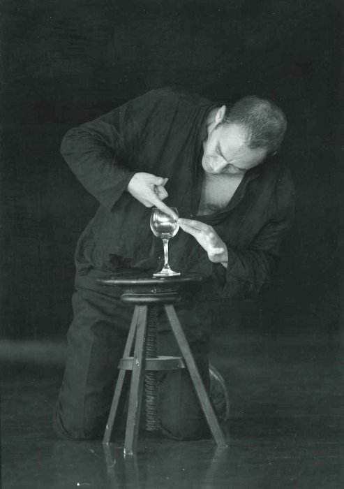 Specialista nell’isolare alcuni particolari dell’azione e nel far cimentare i suoi attori con oggetti simbolici dalle molte facce in sequenze caratterizzate dall’inventività del gioco, Nekrosius affronta in quest’occasione il suo primo laboratorio di formazione con attori estranei alla sua scuola, alla sua lingua e al sue paese. Proporrà per l’occasione come tema di studio e di esercitazione un romanzo importante e denso di straordinaria suggestione come Il maestro e Margherita di Bulgakov, che ha già tentato teatranti di grido ed è evidentemente nei piani dei regista di Vilnius, non nuovo al lavoro sulla narrativa. Oltre al Naso del citato Gogol si ricorda l’esemplare adattamento di Un giorno come un secolo di Aichmatov, ambientato in uno sperduto villaggio uzbeco in prossimità di un cosmodromo, di cui realizzò a metà degli anni ‘80 con lo Jaunimo Teatras (Teatro dei Giovani) di Vilnius un mirabile spettacolo: una serie di flashback sconvolgenti conduceva da quel territorio militare alieno e segreto nella zona della memoria altrettanto proibita dei pogrom degli anni ‘30, rivisitata nei giorni della gioia popolare per l’abbattimento dei mito di Stalin.