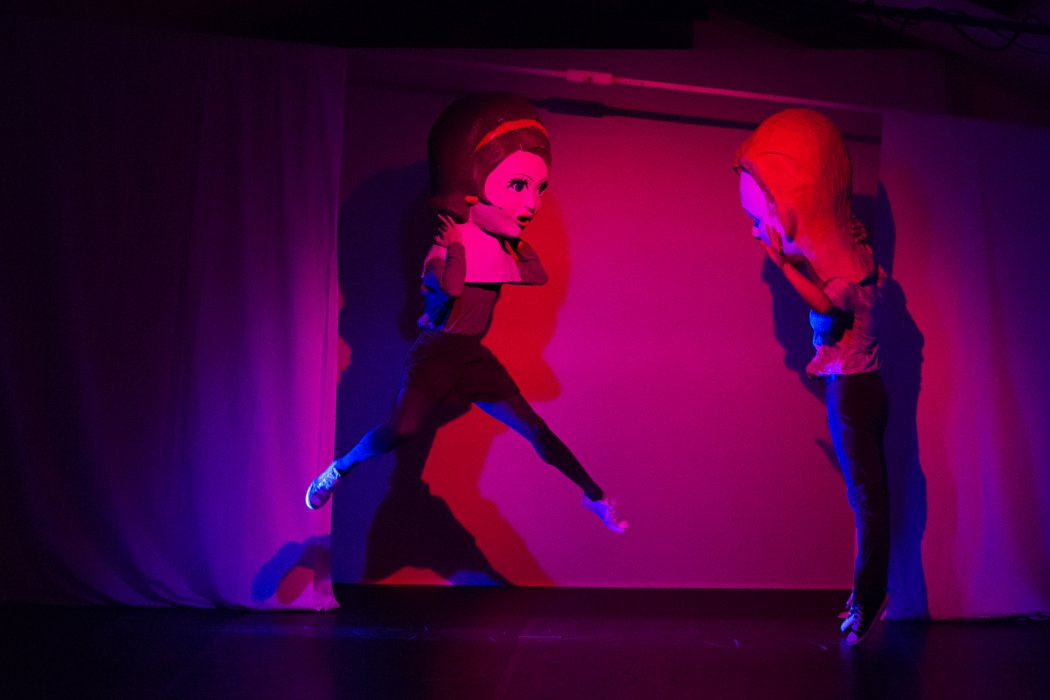 Traparentesi is a group dedicated to performance research and experimentation with Erica Mattioni, Giulia Marcelli, Alex Nazzi and Francesca Zolli. It was founded in 2011. The group uses a hybridisation of theatrical language to develop their research in two directions. On one hand, they probe the language of the body and all its implications as an element of scenery, on the other hand, they collaborate with other artistic forms of representation to mingle their thinking with multiple influences in the search for new aesthetic syntheses. The project Testoni has been developed by Erica Mattioni, author and performer with Traparentesi, and Martina Tavano, a dancer and performer from Friuli, who trained at the “Scuola del Balletto di Toscana” and at the’“Hochschule für Musik und Tanz” in Cologne.