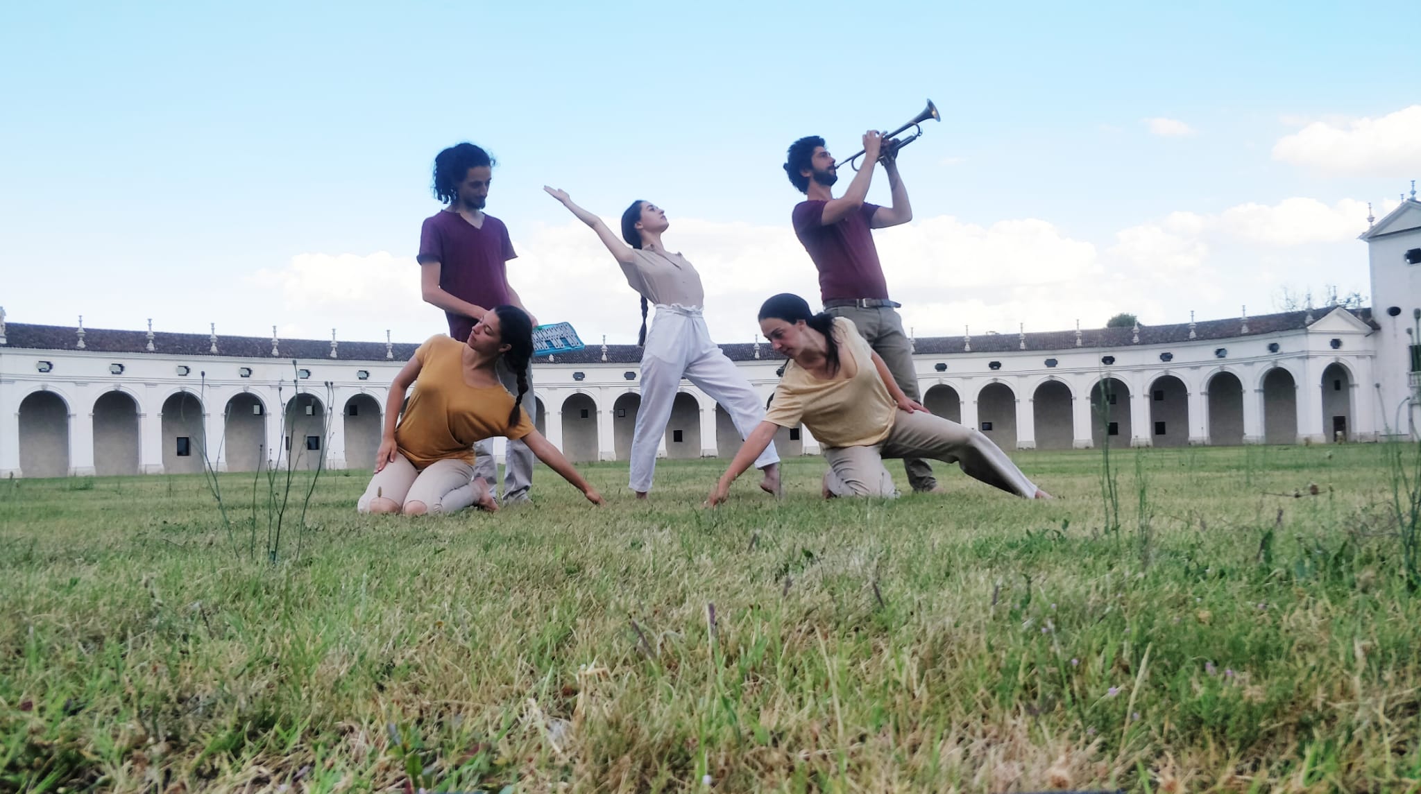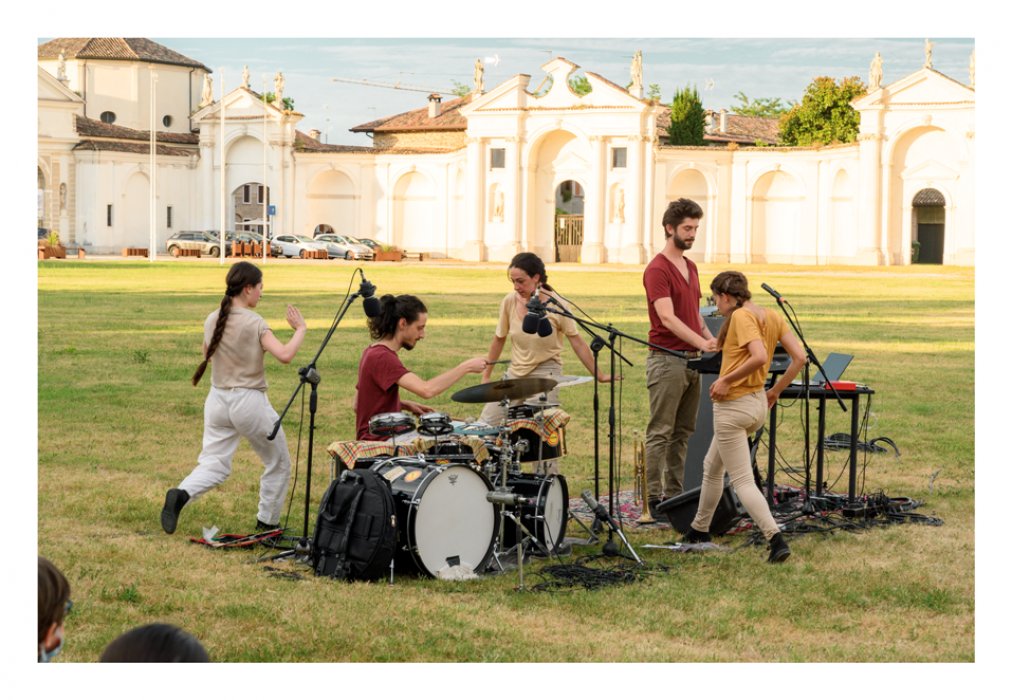 esplora il concetto di confine per provare ad abitare quei luoghi interiori dove l’incontro con il diverso provoca stupore e curiosità, dove l’azione nasce per urgenza e il divieto apre nuove possibilità di conoscenza. Il limite dentro il quale muoversi diventa mezzo per scegliere, per di-vergere, contaminare e ascoltare cosa c’è di qua e cosa di là, dove l’impossibilità del contatto spinge a trovare nuove strategie di relazione per colmare quel vuoto dato dall’annullamento dei corpi. Tre danzatrici e due musicisti si incontrano e mettono in condivisione i loro linguaggi tramite l'improvvisazione e le azioni site specific.