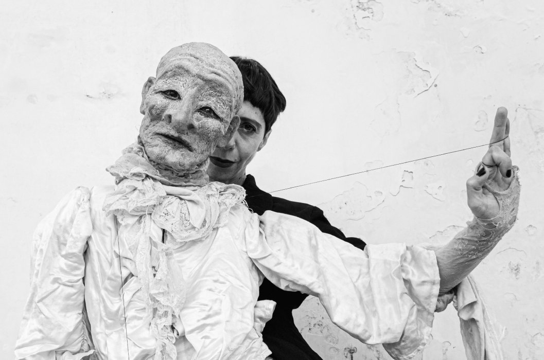Michela Aiello, puppeteer, performer and theatre pedagogue. In Barcelona, where she approached the world of the figure, she trained as a puppeteer in the Taller de Pepe Otal and became an integral part of the atelier's artistic collective. She participates in the Projecto Funicular in Lisbon, having as teachers Fabrizio Montecchi, Nicole Mossoux, Rene Baker, Agnés Limbos, Natacha Belova and Yngvild Aspeli. Since 2021, she has been an associate artist of La Batysse, lieu dédié aux arts de la Marionnette, in Pélussin, France.