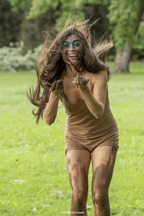 Il seme per Ascolto l’inevitabile trasformazione di tutte le cose è stato piantato un anno fa durante una settimana di residenza artistica rurale a stretto contatto con la terra (Ascolti di Terra 2023, Tuscania, VT) dove l’alternanza del lavoro agricolo con momenti di elaborazione artistica, ha portato alla creazione di una poesia in movimento di 10 minuti. Questo primo studio è stato condiviso con un piccolo gruppo di persone del luogo all'aria aperta tra olivi e campi di grano. Poi lo stesso studio è stato condiviso nel parco del museo di Konkrete Kunst di Ingolstadt per un festival di danza sulla Terra (Tanztage 2023, Germania). Oggi la poesia vuole espandersi e occupare uno spazio più dilatato dove ogni momento è vissuto e non accennato.” Gaia Mencagli