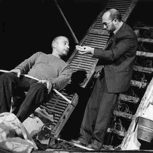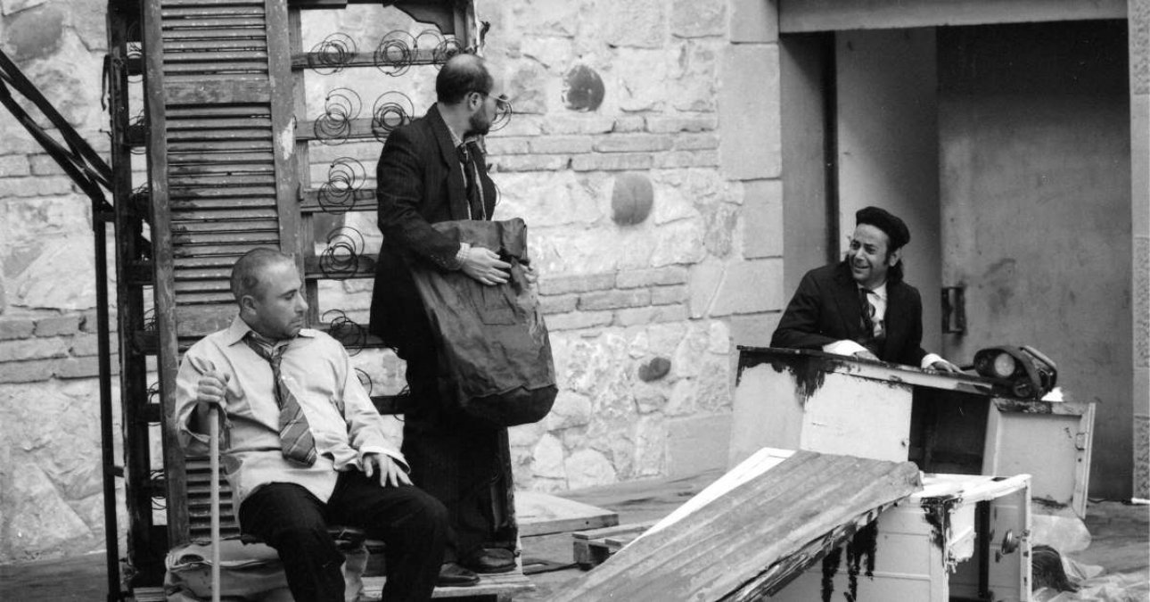 CREDITSIn un luogo che assomiglia ad una discarica abusiva, pieno di rifiuti e d'immondizia, si danno appuntamento Peppe, Tano e Uno. E' il loro cortile. Il luogo dove tre uomini possono ancora parlare, possono ancora ricordare, possono ancora esistere. Non sappiamo da dove vengono, nè da cosa sono legati, quasi avessero perso la cognizione del tempo. Sono solo tre uomini - bambini con i loro piccoli gesti, con il bisogno d'ascoltarsi, con il gusto del gioco: perchè nel loro cortile nessuno può togliergli il piacere di giocare. Il cortile è il quarto testo teatrale di Spiro Scimone, drammaturgo e attore messinese rivelatosi negli anni Novanta con i folgoranti Nunzio e Bar. Un teatro, il suo, dal ritmo inesorabile, scandito al metronomo sulle piccole ossessioni del quotidiano che diventano paradigma universale della nostra esistenza.