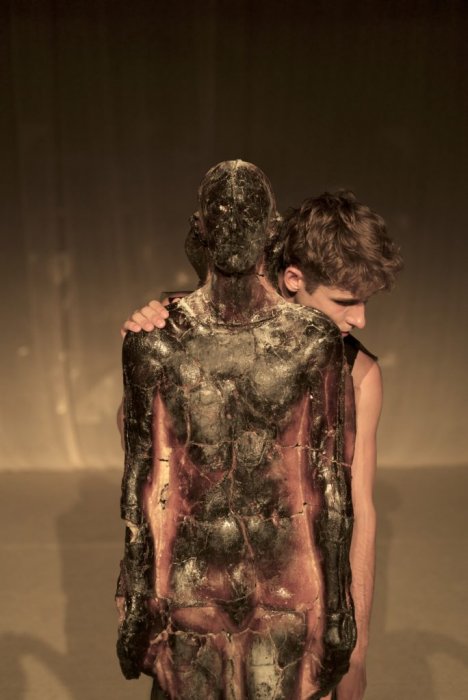 Il personaggio di Amleto di Shakespeare è incastrato in un comando di vendetta che il proprio padre gli ha imposto, ma che lui non riesce a portare a termine fino all’ultima scena della tragedia, quando ormai è troppo tardi. Dall’impossibilità del figlio Amleto ad agire si sviluppa l’idea di questo spettacolo, che vorrebbe tradurre in immagini il difficile processo di individuazione di una persona.