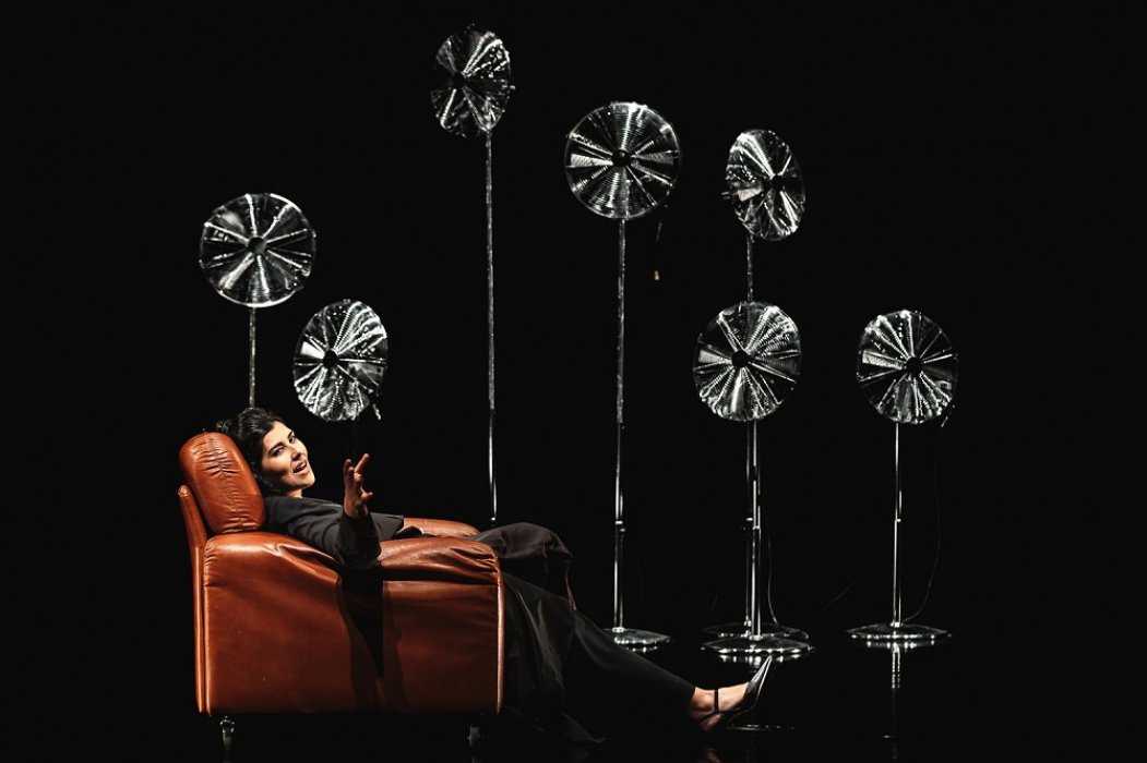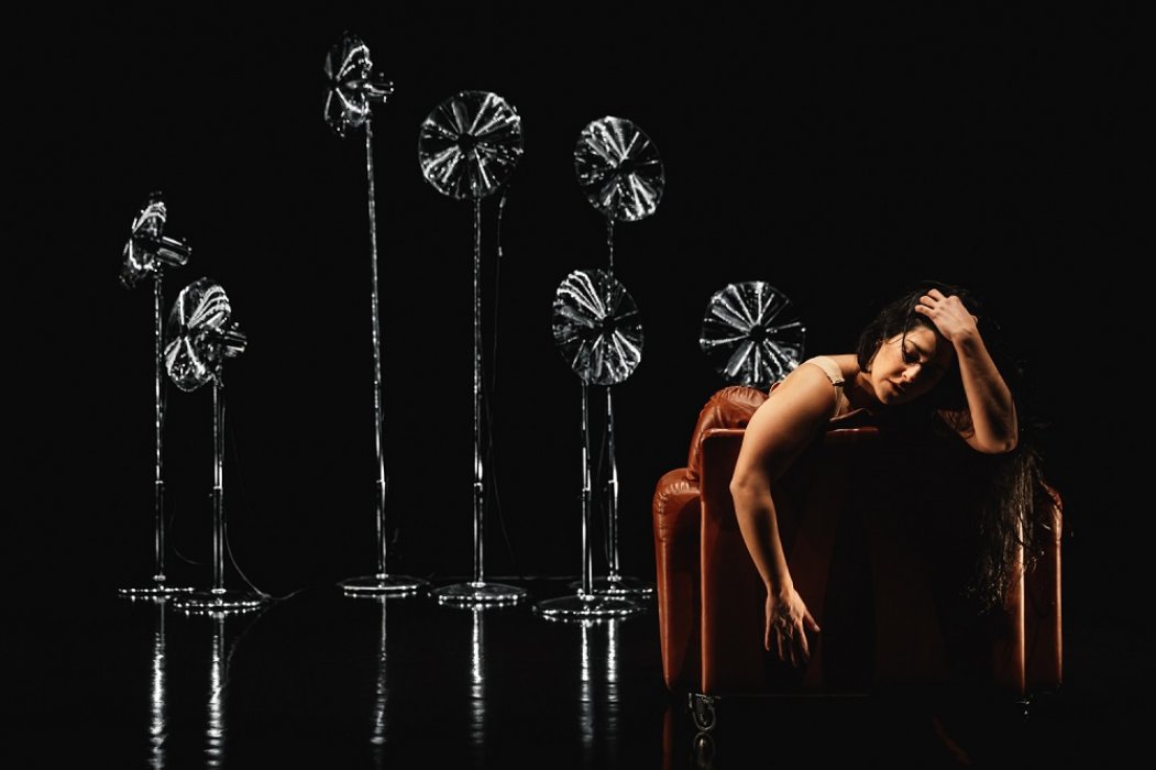 Penelope è una donna sottoposta alle intemperie del tempo, conosce la propria intelligenza, ormai conosce se stessa, la saggezza che l’ha portata ad essere un’eroina di resistenza e determinazione. Conosce il suo corpo e la sua lingua. Parla riempiendo il suo deserto emotivo di parole che sono una prima persona singolare, un monologo ironico e dolente che segue il tempo languido del sogno e quello forsennato del desiderio e della fame. La bocca è la porta del corpo e della mente che dà sul mondo esterno. È il luogo da cui entra il cibo, da cui escono le parole. Penelope osserva il mondo dei maschi, cercando ristoro dal caldo e dal fumo della guerra che imperversa fuori. Dal corridoio di casa, sprofondata in una noia senza fine, immagina di invitare a pranzo l’uomo che attende da sempre.