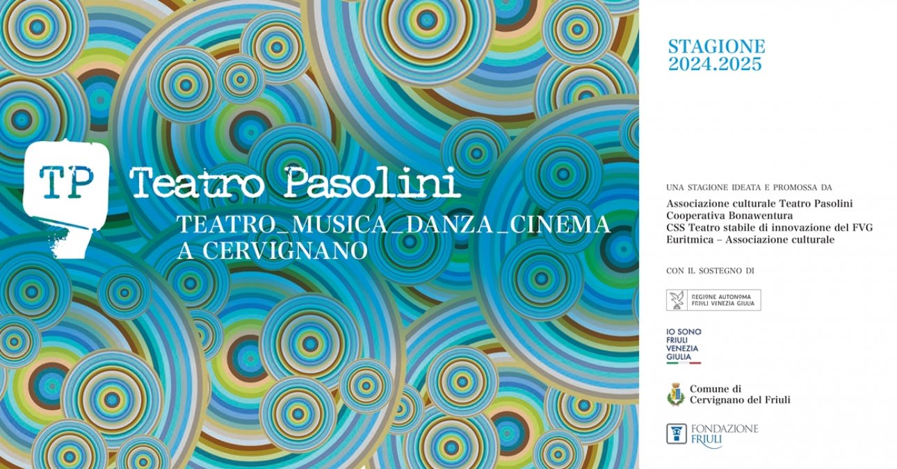 Il Teatro Pasolini di Cervignano del Friuli inaugura la nuova Stagione artistica di teatro, danza, musica e cinema giunta alla 28ª edizione e realizzata con il sostegno della Regione Autonoma Friuli Venezia Giulia, del Comune di Cervignano del Friuli e della Fondazione Friuli.