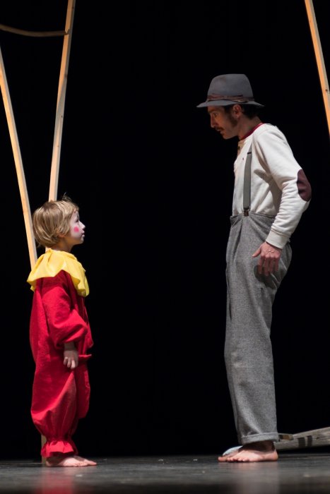 Le figure del clown e del contadino rappresentano due mondi diametralmente opposti: da un lato il mondo adulto, concreto, fatto di terra e di ritmi che si ripetono, e dall'altro l'universo bambino di gioco e di scoperta in cui tutto è possibile. Lo spettacolo vede in scena un padre, attore professionista, con suo figlio, un bambino di otto anni. In un lavoro senza parole, indagano sulle relazioni di scambio fra due generazioni, annullando le dimensioni verticali di processo educativo, a favore di un ascolto reciproco capace di costruire un legame profondo.