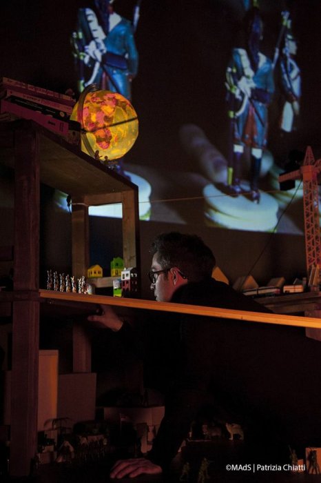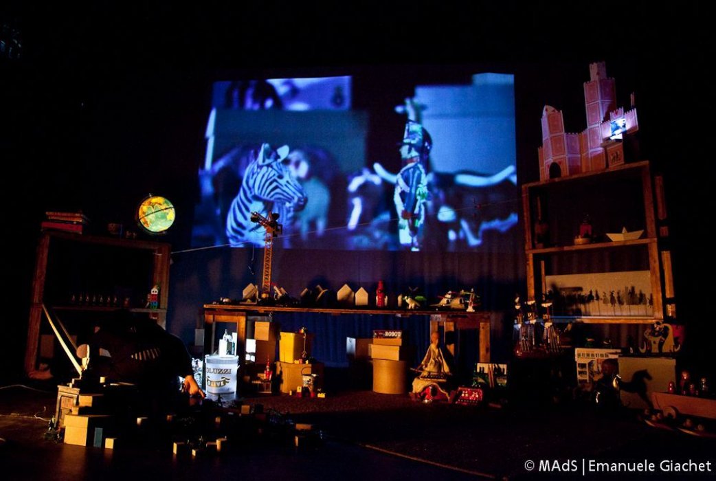 The playroom is the set, a land where magic happens. The theatre is put at the service of the camera eye which, like the keyhole of an imaginary door, offers the audience a new and privileged perspective, telling and showing a story out of tiny and imperceptible details.