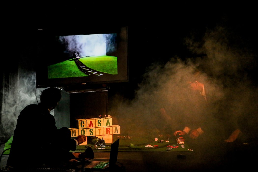 Casa Nostra nasce dalla ricerca sull’intersezione tra teatro d’oggetti e teatro civile, nel tentativo di affrontare in modo alternativo e non scontato tematiche fondamentali e quanto mai attuali relative alla dimensione storica e politica. L’obiettivo è quello di coniugare una drammaturgia per immagini a una componente quasi documentaria, o d’inchiesta, cercando di raccontare un pezzo recente e cruciale della storia italiana rinunciando all’uso della parola in scena ma tramite l’uso performativo dei giocattoli e tramite la giustapposizione significante delle parole altrui.