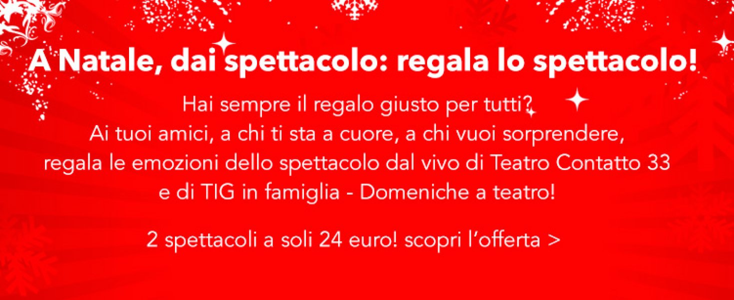 Hai sempre il regalo giusto per tutti? Ai tuoi amici, a chi ti sta a cuore, a chi vuoi sorprendere, regala le emozioni dello spettacolo dal vivo di Teatro Contatto 33 e di Contatto TIG in famiglia - Domeniche a teatro!