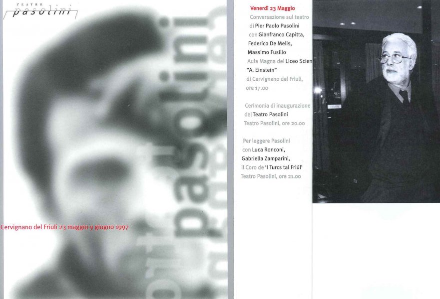 Il Teatro Pasolini di Cervignano è stato inaugurato il 23 maggio 1997. Quel giorno ha aperto il primo teatro italiano a portare il nome dello scrittore di origini friulane. La sera dell’inaugurazione si concluse nel segno di una partecipazione d’eccezione: nell'inedita veste di attore, Luca Ronconi lesse alcuni passi del Pilade di Pier Paolo Pasolini, l’opera che il regista mise in scena nel 1991 con gli allievi della Scuola teatrale dello Stabile di Torino.