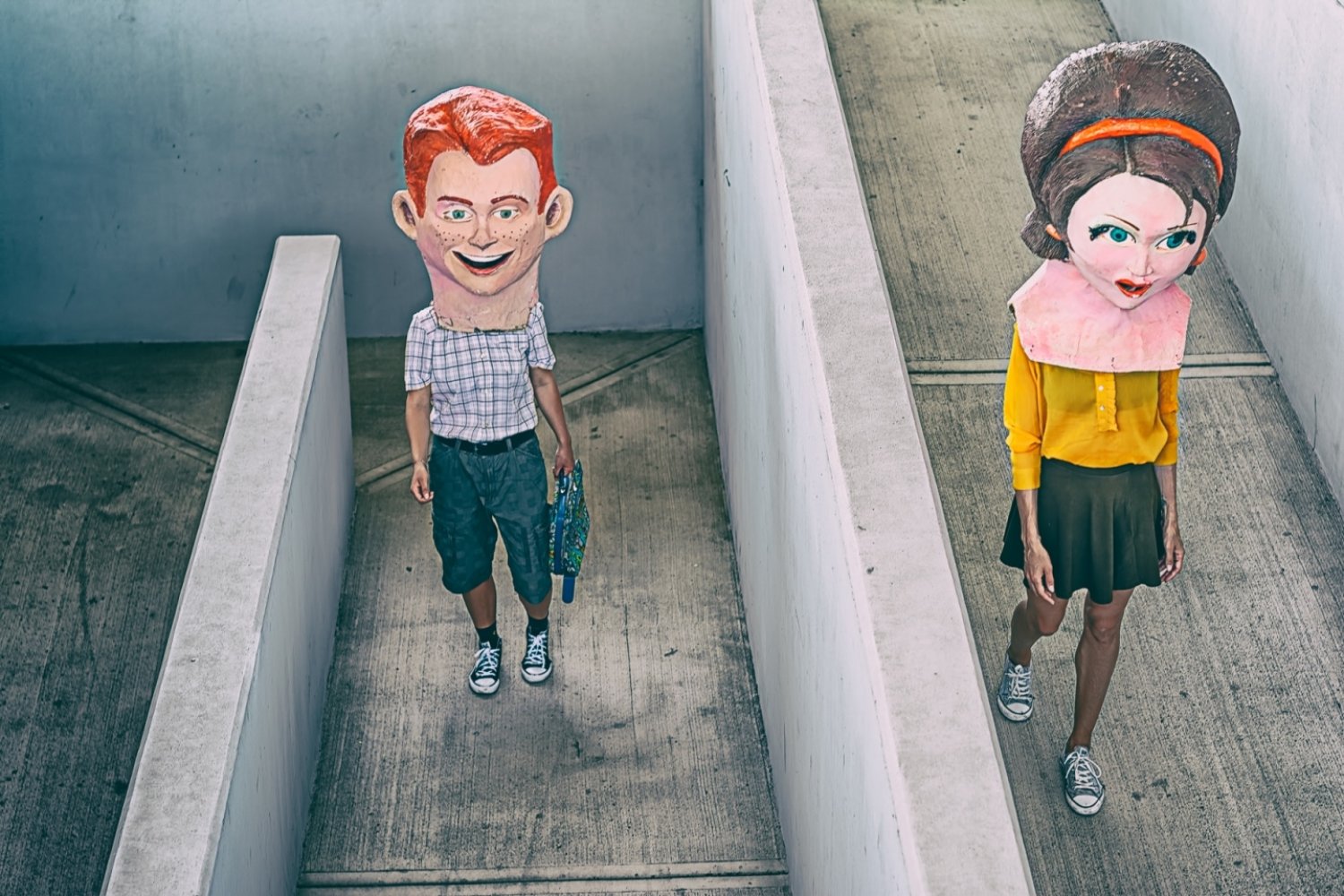 Un uomo e una donna con due grandi teste, contenitori di memoria, di ambizioni, di paure e nevrosi sono i protagonisti di Testoni, lavoro residenziale eseguito dalla danzatrice Tavano e,dalla autrice e performer di Traparentesi, Mattioni e che conta sulla la collaborazione alle luci e alle scene di Alex Nazzi e con la musica e gli arrangiamenti di Gianni Rojatti.