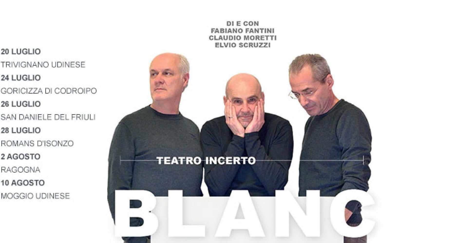 Blanc, la nuova commedia in lingua friulana del Teatro Incerto, prodotta dal CSS Teatro stabile di innovazione del FVG, continua la sua tournée estiva in Friuli Venezia Giulia a partire dal 20 luglio