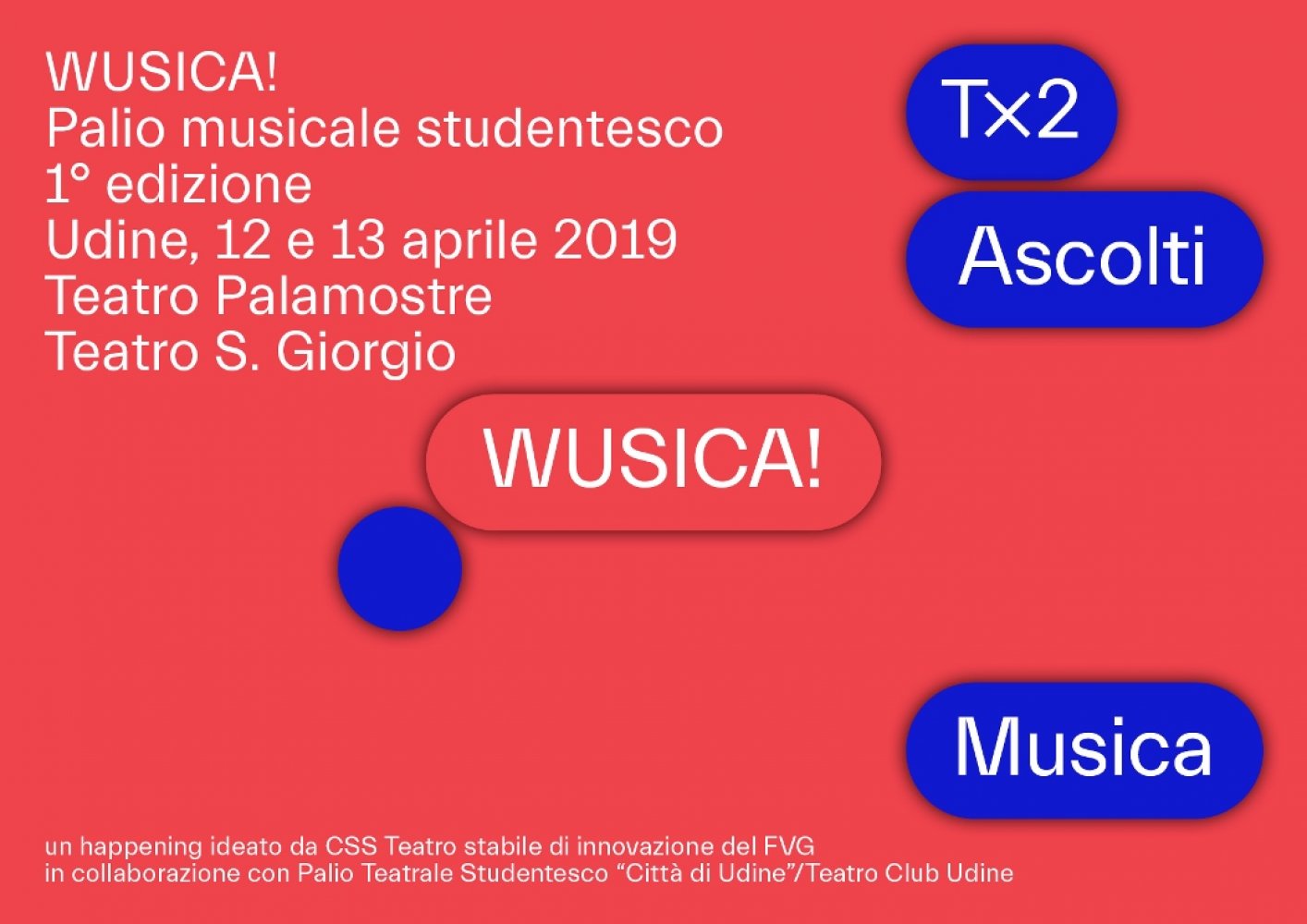 Canti o suoni? C’è tempo fino al 4 aprile per aderire a Wusica! il Palio musicale studentesco di Udine dedicato a tutti gli studenti musicisti per passione e ideato e organizzato dal CSS Teatro stabile di innovazione del FVG, in collaborazione con il glorioso Palio Teatrale Studentesco Città di Udine curato da Teatro Club Udine.