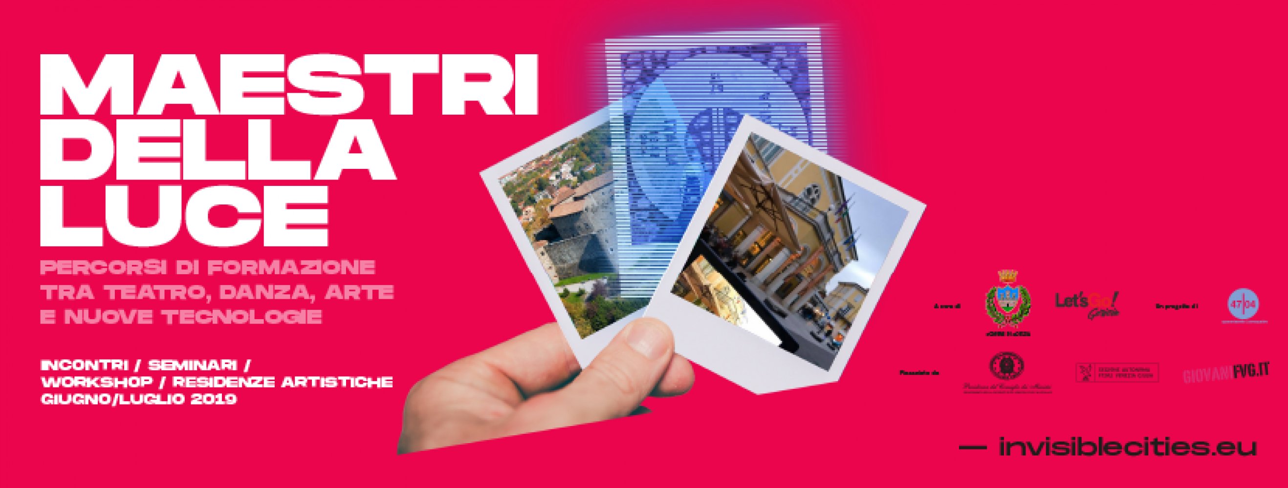 Il progetto Maestri della Luce propone due workshop dalla durata di tre giorni ciascuno, a partire dal 1° luglio e dal 4 luglio entrambi al Punto Giovani del Comune di Gorizia, per interpretare ed esplorare la scena contemporanea e le sue declinazioni in rapporto alle nuove tecnologie, condotti da due professionisti dell’ibridazione dei linguaggi creativi: il regista, attore e drammaturgo Giuliano Scarpinato e l’artista multimediale, scienziato e compositore Alberto Novello.