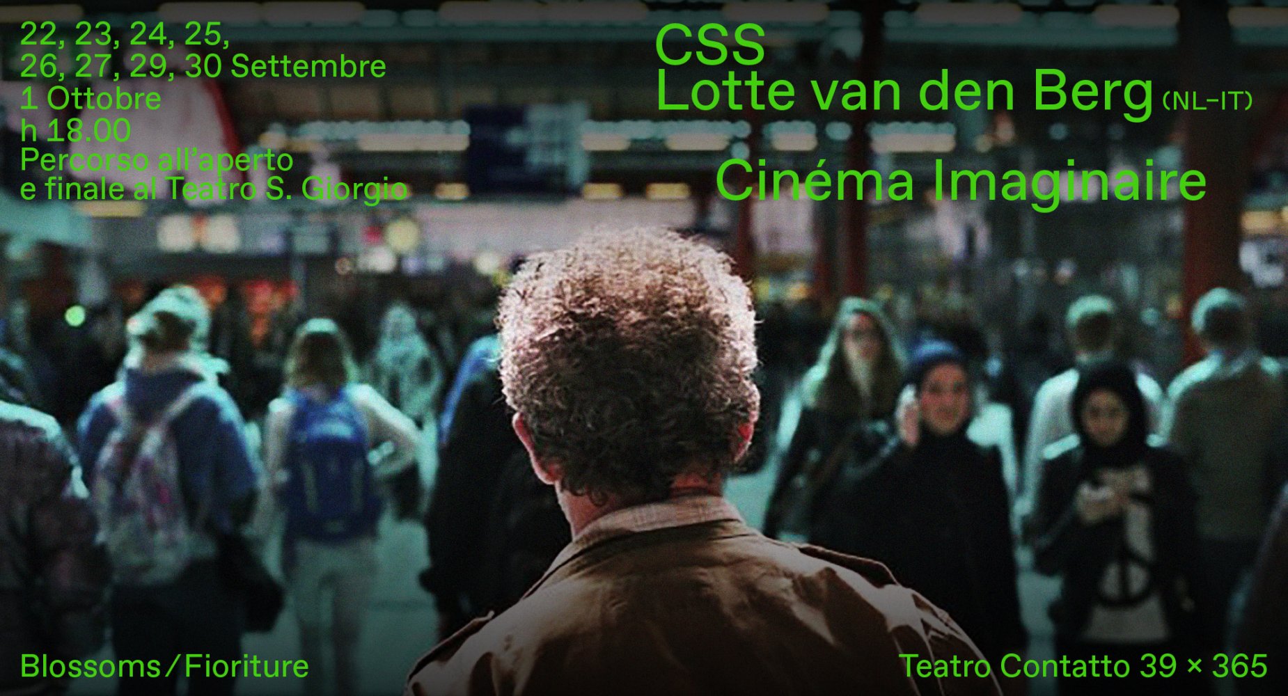 Prima nazionale per la performance itinerante Cinéma imaginaire/Udine ideata dall’artista olandese Lotte van den Berg e adattata nella versione italiana dal duo Deflorian/Tagliarini. Prodotta dal CSS, Cinéma imaginaire/Udine invita piccoli gruppi di spettatori – dal 22 settembre al 1 ottobre attraverso le vie del centro udinese – a proiettare nuove narrazioni e visioni suoi luoghi conosciuti della città e a comporre un personale e immaginario racconto cinematografico dove la realtà diventa finzione.