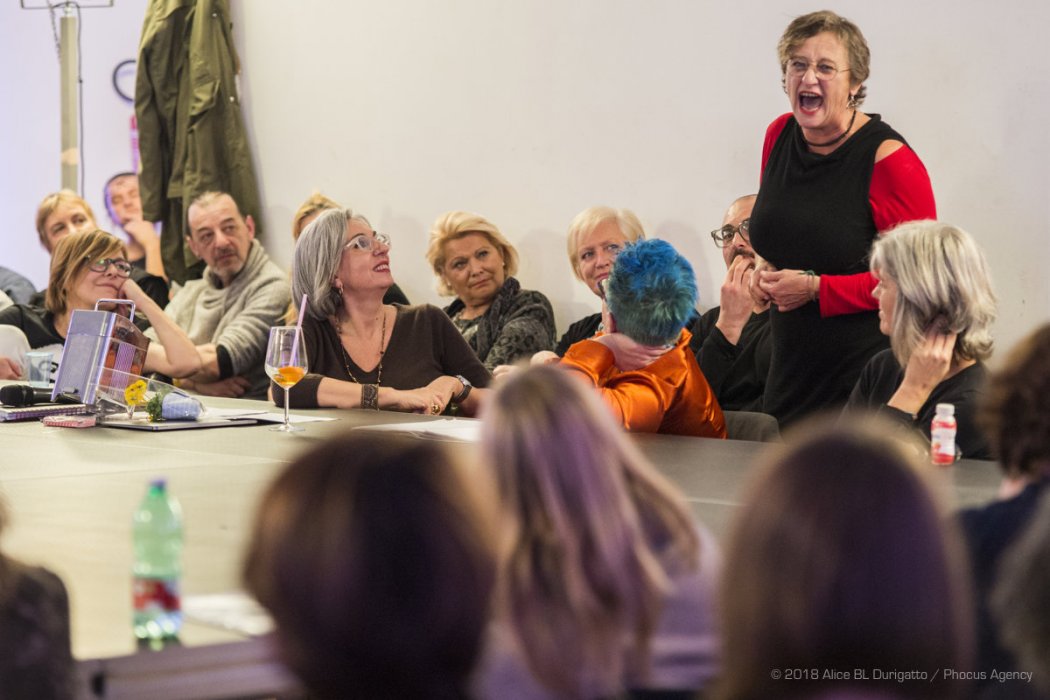 Le “esperte di vita quotidiana” sono tutte donne: hanno risposto alla call in più di 100, di età fra i 16 e gli oltre 70 anni, hanno partecipato al laboratorio, si sono preparate allo spettacolo e sono state parte attiva del gioco teatrale.