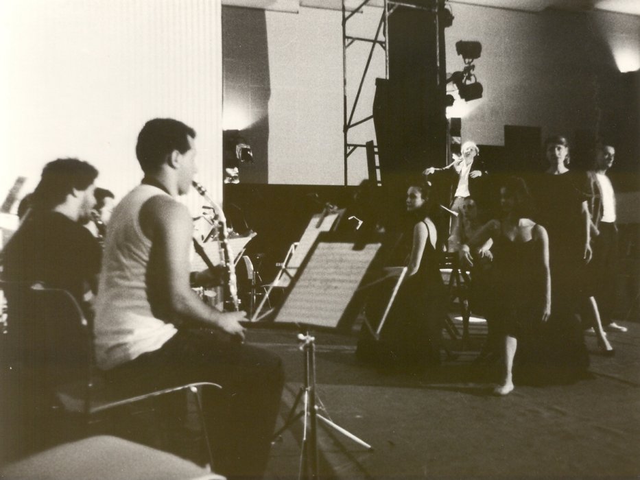 Ne Il canto di un giorno (Ernest H.) ogni elemento espressivo che sia testo, musica, canto, recitazione, danza, regia o strumento è parametro musicale compositivo, e come tale è stato concepito, scritto in partitura ed inserito nel contenitore spettacolare.