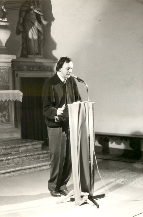 Avvalendosi delle musiche elettroniche di Raffaele Scognamiglio, dell'accompagnamento all'organo di Albino Perosa, delle musiche di Bach e de Joskuen suonate al violino da Licia Ellero e dei cori cantati dalla Cappella Musicale J.Tomadini, del contributo del pittore Gilberto di San Marzana, Giuseppe Bevilacqua ha preparato una serata di grande emozione e suggestione, dove è presente vivissima la forza e il pensiero del Maestro Orazio Costa Giovangigli, uno dei grandi uomini di teatro italiani, dal cui insegnamento (parallelo al lavoro di Copeau) sono nate le migliori generazioni di attori del dopo-guerra italiano.