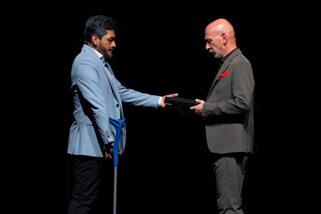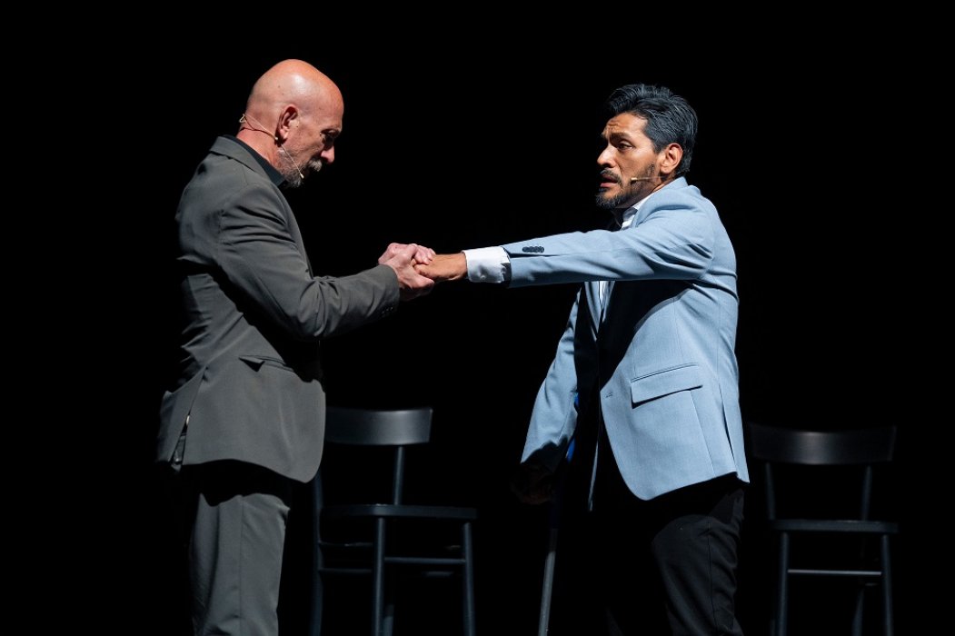 Tratto dal romanzo Apeirogon di Colum McCann (Copyright © 2021, Colum McCann. All rights reserved), lo straordinario libro che ha vinto il Premio Terzani 2022, lo spettacolo è una testimonianza oggi ancor più necessaria davanti all’orrore in Palestina. L’autore, lo scrittore irlandese Colum McCann, ha raccolto nei mille e uno frammenti che compongono il romanzo i brandelli di un conflitto apparentemente senza soluzione, già da prima dell'ormai tristemente noto 7 ottobre 2023, e che ha dato luogo a due anni di violenze inaudite.