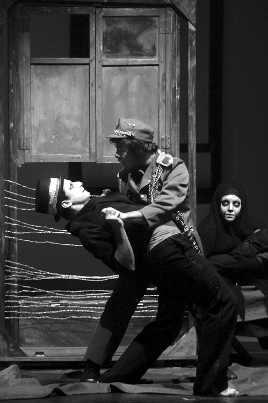 “Mi ha sempre colpito la partecipazione che l'urlo senza eco del disperato soldato Woyzeck è capace di accendere nei giovani”. E proprio con un gruppo di giovani attori – i talenti della scena europea che nell’estate 2003 hanno partecipato alla XII edizione dell’Ecole des Maîtres (il corso di perfezionamento teatrale per attori europei guidato da grandi maestri della scena internazionale) – il regista milanese Giancarlo Cobelli si è riavvicinato al capolavoro incompiuto di Büchner, a oltre trent’anni dal suo primo allestimento del Woyzeck. Grazie all’impegno coproduttivo del CSS Teatro stabile di innovazione del FVG e del Teatro Stabile Torino, da quell’esperienza pedagogica nasce uno spettacolo che arriverà al suo debutto italiano l’8 febbraio 2005. Una formazione di giovani interpreti provenienti da Italia, Francia, Belgio e Portogallo, incarnano il dolente monito antimilitarista del drammaturgo tedesco, raccontando la parabola discendente del soldato Woyzeck, vittima e cavia dei suoi superiori e commilitoni, che metterà fine alla sua miseria macchiandosi dell’assassinio dell’amata Marie e affrontando il plotone di esecuzione. In scena, un Woyzeck portoghese, sei interpreti femminili a passarsi il testimone per dare corpo, “polifonicamente”, alla protagonista Marie, e una galleria di altri personaggi ritratti con un realismo violento e deformato. Ai risvolti tragici della vicenda, aggiungono disperazione e pathos le musiche e i canti composti per l’occasione da Giovanna Marini. “Assieme ai miei attori – aggiunge Cobelli - ho voluto ritornare dopo molti anni dai miei Woyzeck precedenti (il primo, teatrale, è del 1968, mentre nel 1970 Cobelli lavorò ad una versione televisiva sull’Isola di Ventotene, isola dei confinati politici durante il fascismo) in uno spazio scenico reso claustrofobico dalla sofferenza al punto da riportarci alla memoria i giorni terribili di un lager; uno spazio dove miseria e vessazione rendono impotente il corpo e l’anima dell’essere umano; dove un’impietosa adiografia rivela la colpa, l’innocenza, la meschinità, l’assassinio, il disordine”.