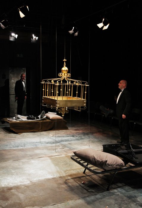 Si chiede agli attori (due) di “abitare” la scena per un tempo cui è stata sottratta teatrosità ed in uno spazio cui viene sottratta la convenzione del “porgeree” verso il pubblico grazie all'utilizzo di quattro “quarte pareti”.