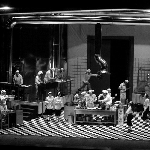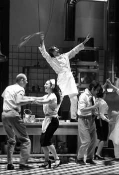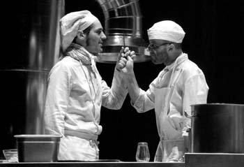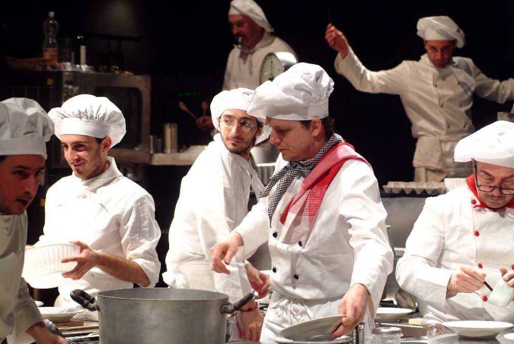 locandina"Per Shakespeare il mondo sara' stato un palcoscenico, ma per me e' una cucina, dove la gente va e viene senza potersi fermare il tempo necessario per comprendersi e dove amicizie, amori e odi si dimenticano con la stessa rapidita' con cui nascono". Capofila con Osborne e Pinter degli "arrabbiati", Arnold Wesker ha scritto La cucina nel 1959: un testo colossale e stupendo che scandisce, vorticosamente, la vivace varieta' umana di un grande ristorante, con il suo folle andirivieni di cuochi, camerieri, lavapiatti, sguatteri e capireparto nell'ora dei pasti. Rita Maffei "imbandisce" questo microcosmo teatrale dividendone la sfida con un nutrito gruppo di attori, impegnati moltiplicarsi nei ruoli dei 32 personaggi immaginati dall'autore.