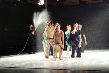 locandinaIl grande psichiatra afferma: “non siamo solo corpo organico, ma anche corpo sociale, perché la malattia avviene nella vita, è espressione delle contraddizioni della realtà…”. Corpi cantano e danzano, si sollevano, cadono, segnano semplicemente un volume, insieme, in una partitura ossessivamente collettiva, studiati e osservati da un uomo e una donna eleganti, tra il professionale e il mafioso, che paiono prendere appunti, incamerare sensazioni. Salvo poi essere talmente influenzati da quella danza minuziosamente scrutata da avere la tentazione di interagire.