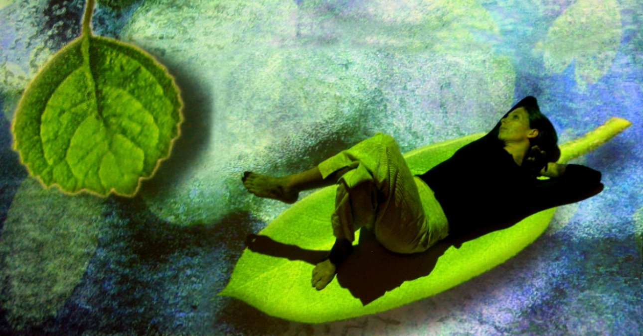 Immergersi in un ambiente naturale interattivo: sotto la guida di tre danzatrici i bambini entrano in variopinti paesaggi virtuali tutti da esplorare.