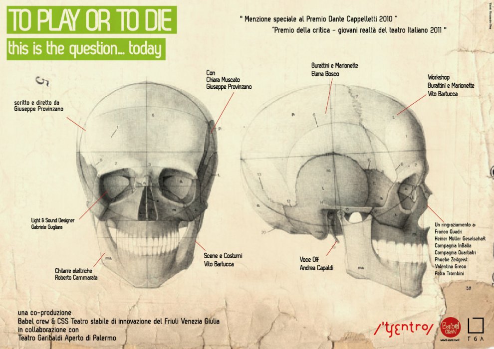 Come Isaac Newton un giorno come altri mi cade sulla testa l'Hamletmaschine di Heiner Müller: mi ubriaco di questo testo divorando a sua volta l'Hamlet di William Shakespeare, per poi digerire ed espellere To play or to die, una drammaturgia che del testo di Müller assume forza e carattere e da quello di Shakespeare ruba il plot.