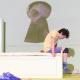 Sa chambre est un monde sans frontières où la géographie peut rien déterminer: il y a la mer, les montagnes, le soleil, la lune, des poissons, et des oiseaux. Tout ensemble. Son lit est un radeau, un aéroplane, un château, ou une navette spatiale.