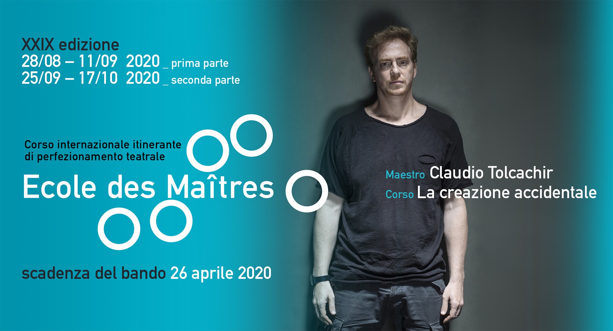 Alla guida dell’Ecole des Maîtres ci sarà per questa edizione il drammaturgo, regista e attore argentino Claudio Tolcachir. Rappresentato in più di venti Paesi e tradotto in sei lingue, dal 2001 Tolcachir dirige, insieme all’omonima compagnia da lui fondata nel 1998, lo spazio culturale Timbre 4, a Buenos Aires. Ha una pluriennale esperienza come pedagogo e ha tenuto seminari di perfezionamento in Italia (in due edizioni della Biennale di Venezia), Francia, Spagna, Cile, Brasile, Uruguay, Perú e Stati Uniti.