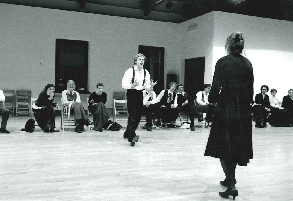Ora a creare una dialettica nell’avvicendarsi delle prove annuali, deve essere la perspicuità di ciascun corso e il fatto che ciascuno abbia un proprio carattere diverso per la materia affrontata e il modo di affrontarla, come di fatto l’alternarsi dei pedagoghi garantisce. infatti dal seminario sul music hall, proposto lo scorso anno da Alfredo Arias, giostrando tra le lingue, la danza e il canto con testi eterogenei, siamo passati grazie a Anatolij Vasil’ev all’approccio profondo col grande romanzo russo. Con un elemento in comune: ognuna delle due esperienze ha puntato su materiali non creati direttamente per la scena e ha affidato all’autonomia del ragazzi la scelta dei brani e la loro drammatizzazione, facendone un momento basilare di ciascun seminario.