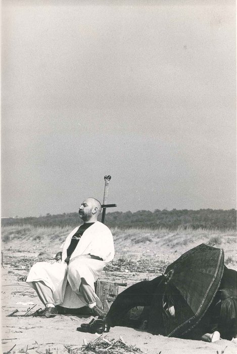 Questa ricerca di nuove strade prosegue con la collaborazione di F. Taviani, che firma la sceneggiatura dello spettacolo. Questa deriverà dalla trascrizione di 2 testi di lngmar Bergman: l’originaria opera teatrale Pittura su legno e la successiva sceneggiatura per il film, realizzato nel 1959, Il Settimo Sigillo. Il gruppo si confronterà così con un testo derivante da due concezioni drammaturgiche diverse, quella teatrale e quella cinematografica, due linguaggi che nelle esperienze recenti tendono sempre più a mescolarsi e a confondersi.