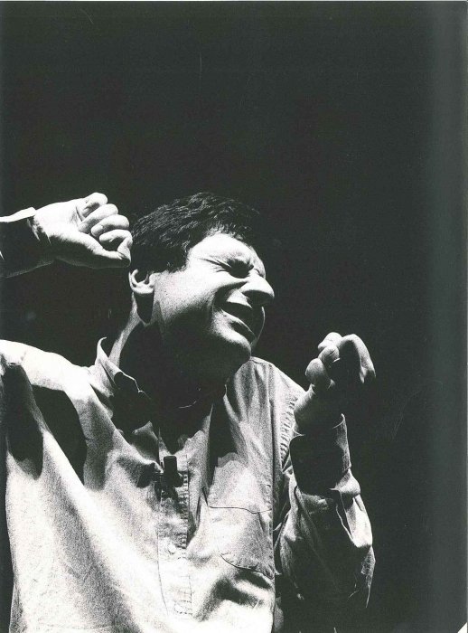lo parlo d’altro, parlo dell’Altro. Insomma: mi piace parlare dell’anno 1600 berlinetta, del calcare le scene e del calcare in generale, di anguille rettangolari, di prigioni subacquee senza bambole (che è peggio che senza bombole, per una bambina), cercando divagazioni concentriche e rettilinee. lo vado in scena per dire, fare, baciare, lettera, testamento. Il titolo l’ho scelto per amore dei cetacei, o per far sedere l’insediabile. La bambina senza bambole pianse, anche se sottacqua non si vedeva; la roba stesa non si alzò mai più e la Bentley arancione si allontanò con tutta la roba sporca: si poteva ricominciare.»